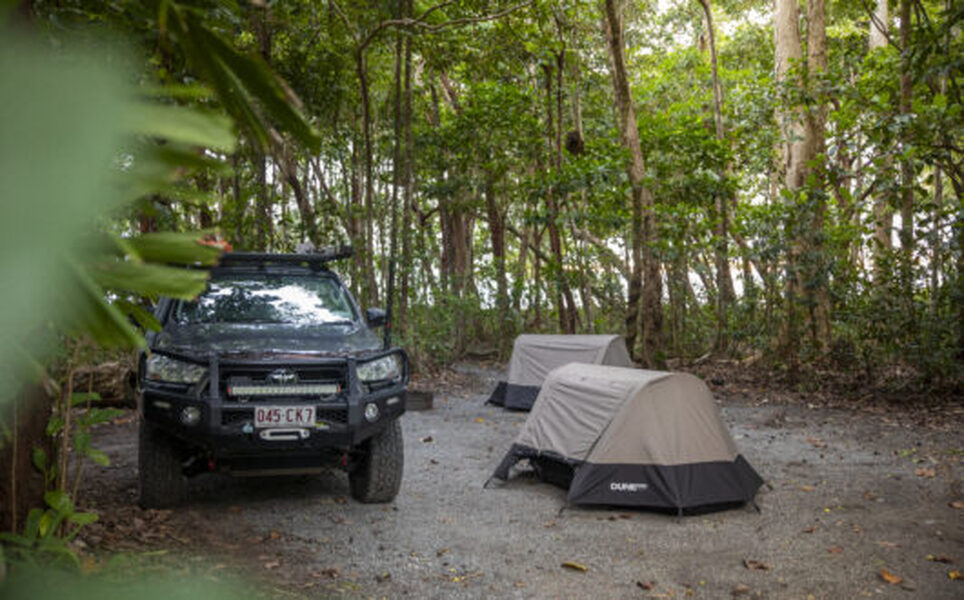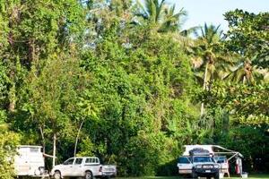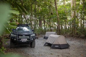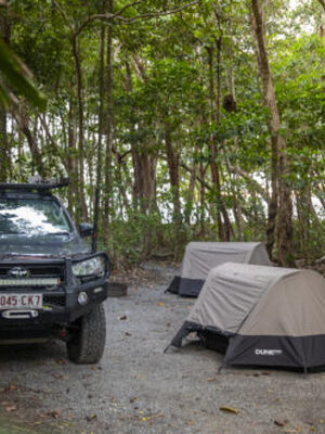 The road to Cape Tribulation is sealed. The campground driveway is 800m of gravel suitable for 2WD vehicles. The campground is 45 minutes from the ferry - keep an eye out for the big yellow sign just after Masons Shop.