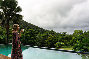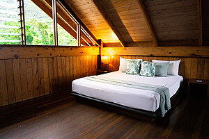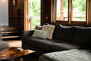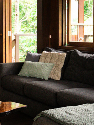 The Sunrise Room is elevated on the second, loft-style floor of the house, positioned to catch the first light over the ocean and wake up gently with birdsong. While the Mountain View Room looks west to the rainforest peaks, where tiny dragon lizards climb trees, and the boom of the endangered Southern Cassowary calls out through the leaves. The Cape Tribulation Getaway house can comfortably accommodate up to 4 guests.