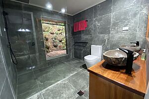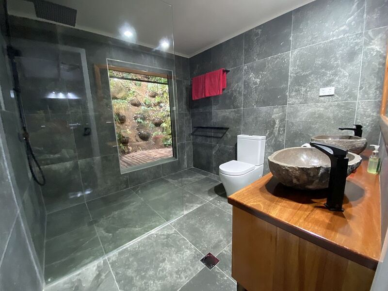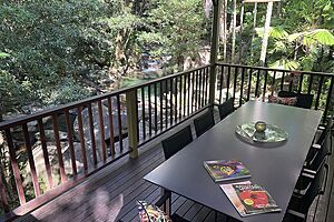 Our large verandah is set in the tree-tops with a view of the stream and falls. Perfect for bird watchers!